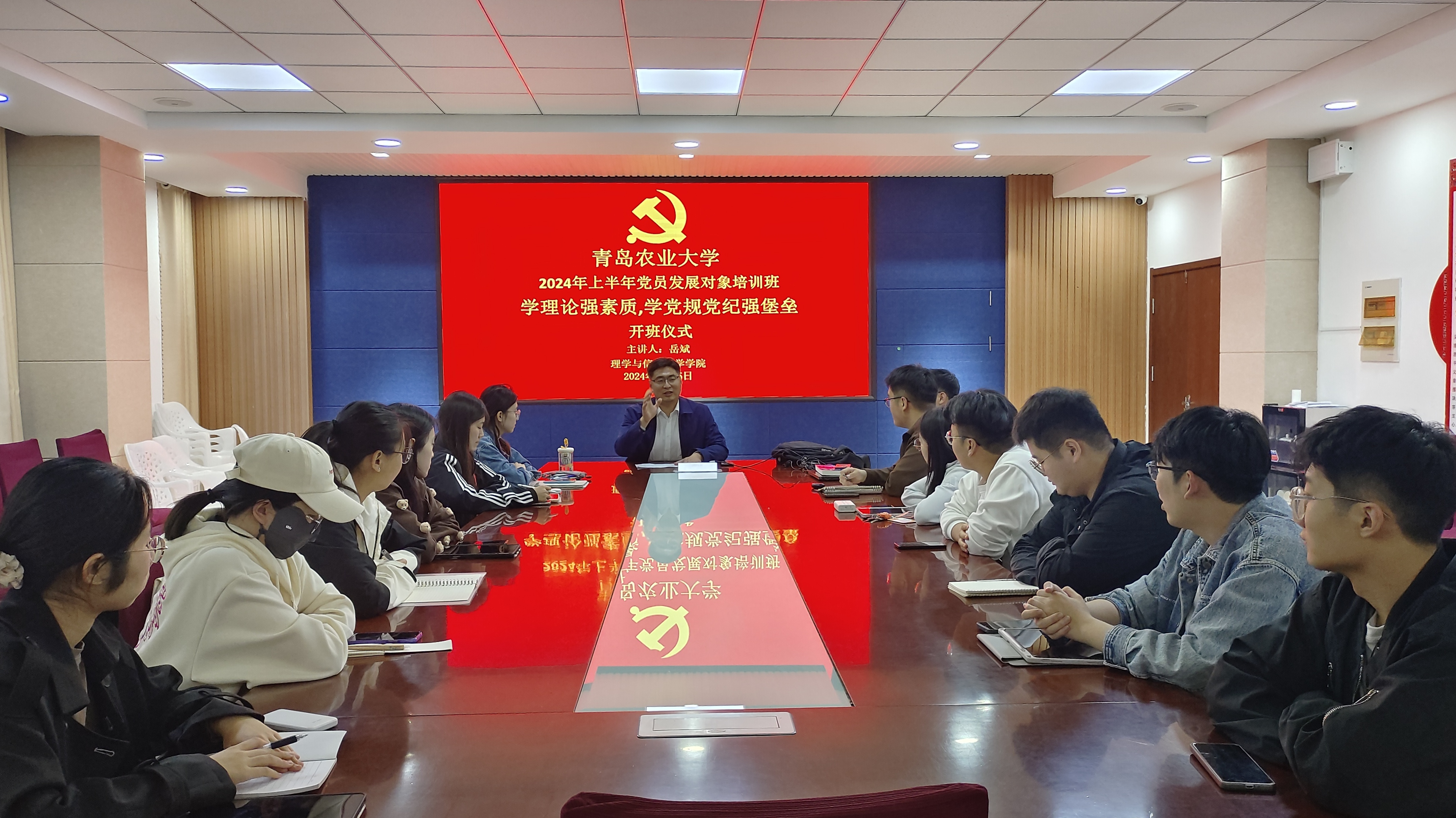 会上,岳斌就此次培训向所有参加培训班的党员发展对象提出三点要求:一是要充分发挥先锋模范带头作用,在学习和日常生活中做好表率,维护好个人宿舍的安全卫生,注重全面发展,切实提升能力水平;二是要认识自己的身份,紧跟党的步伐,端正入党动机,践行党的宗旨,始终以党的标准严格要求,做到行动上的真正入党;三是要提高政治站位,深刻领会本次培训的重要意义,珍惜培训机会,认真对待本次培训,严格遵守培训考试纪律。最后,岳斌希望同学们不忘初心,方得始终,始终按照严格的标准要求自己,并祝愿大家早日加入党组织。