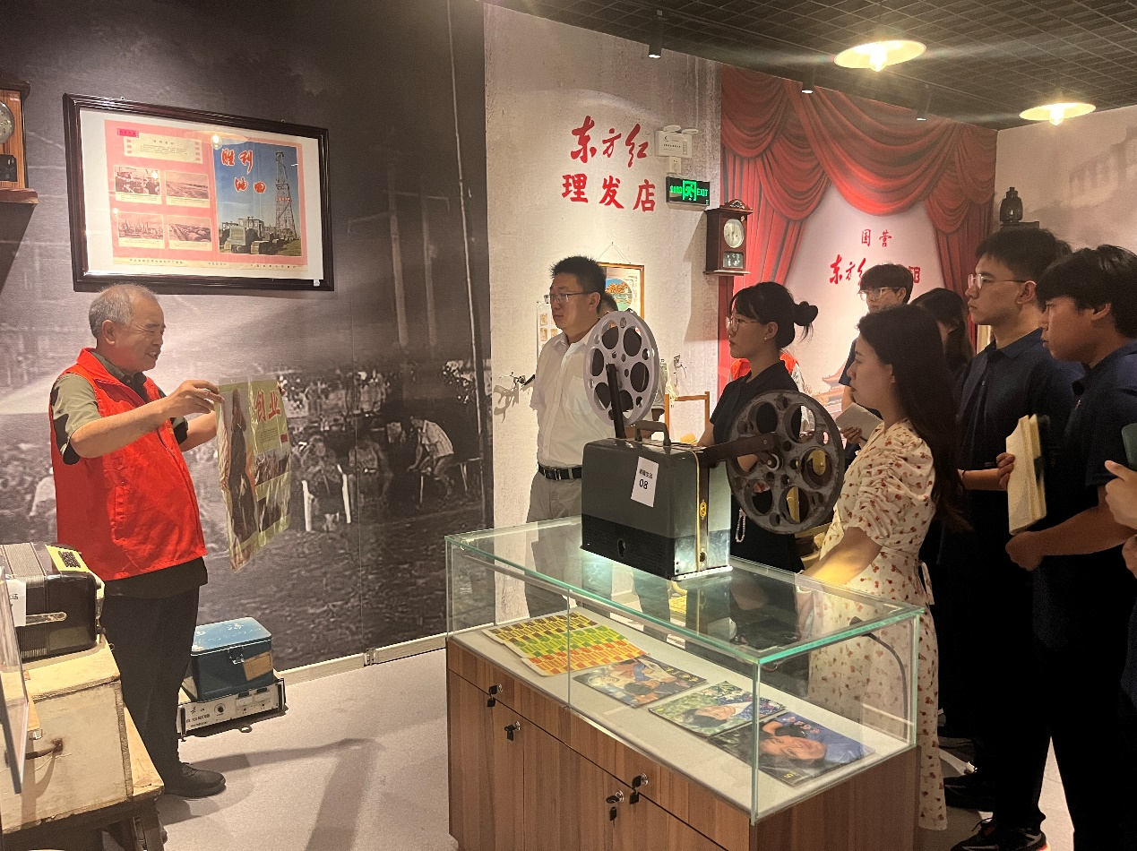 在胜利油田首届“最美五老”获得者、教育基地负责人王喜同志的热情带领和讲解下,老师和员工们依次参观了东方红党史故事长廊、东方红开发建设实物展、东方红党性教育室内展厅和毛主席像展厅。沿着红色故事长廊,大家聆听胡耀邦在孤岛植树造林、徐世友驻军孤岛、刘少奇女儿刘平平在孤岛成长经历以及油田工人发扬“王进喜奉献精神”等感人至深的事迹。通过一张张老照片、一件件老物件,感受孤岛人民为实现民族解放和美好生活不懈奋斗的英雄气概,深刻体会革命先辈在困难面前不屈服、危险面前不退缩、诱惑面前不动摇的革命意志和斗争精神。