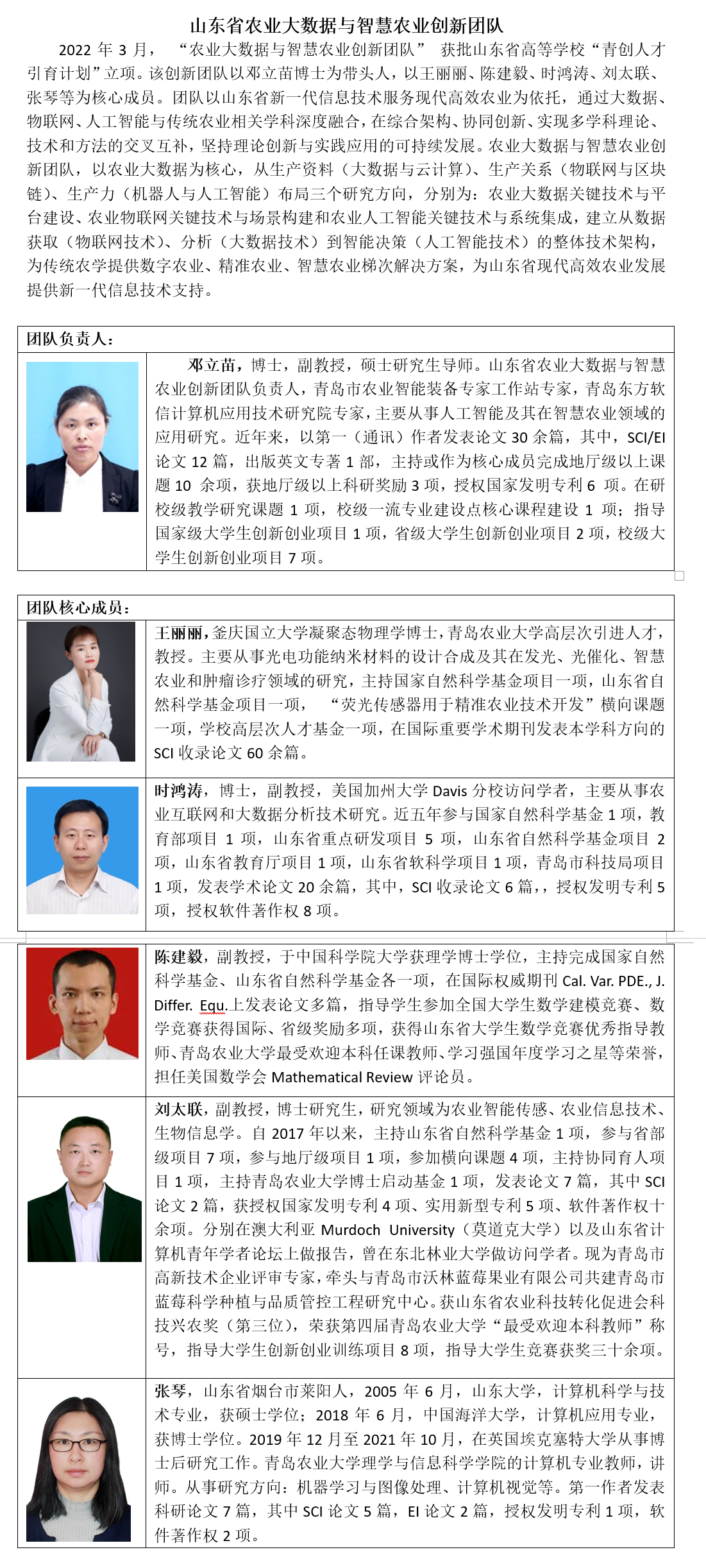 农业大数据与智慧农业创新团队