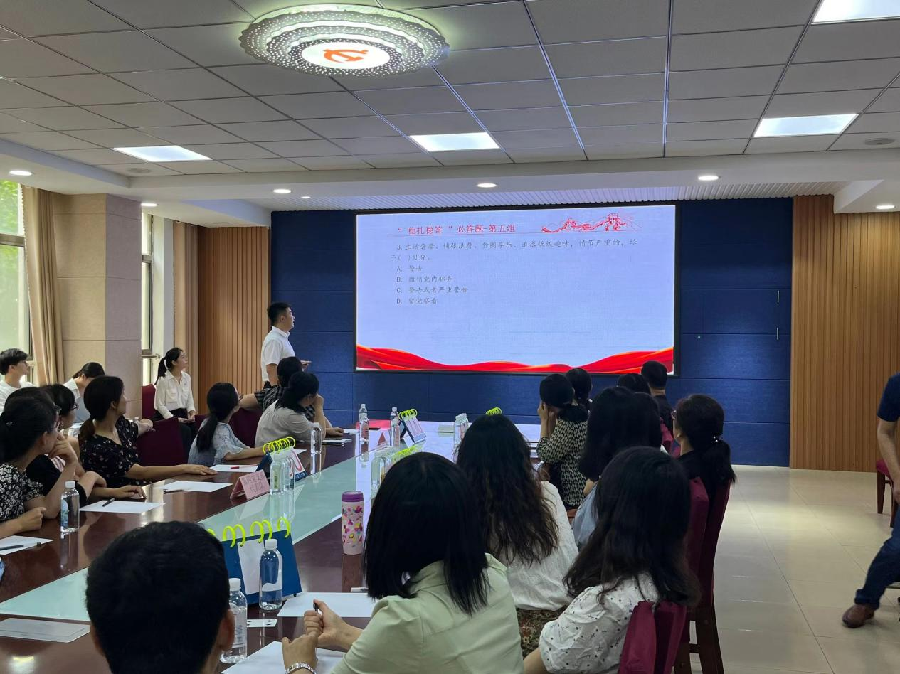 此次知识竞赛以各党支部为单位,共6支队伍24名选手参赛。以新修订的《中国共产党纪律处分条例》内容为重点,设置“ 稳扎稳答 ”必答题、“击鼓传花”接力赛、“分秒必争”抢答题、“智勇挑战”风险题四个环节,充分检验教工党员对《条例》的熟悉程度、理解能力和运用水平。比赛现场气氛热烈、高潮迭起、掌声不断,参赛选手们聚精会神、踊跃答题,在激烈角逐中加深了对《条例》内容的理解掌握。最后根据得分高低,第九党支部代表队以答题零错误率获一等奖,员工党支部代表队和第一党支部代表队获二等奖,第二党支部代表队、第三党支部代表队和第四党支部代表队获三等奖。