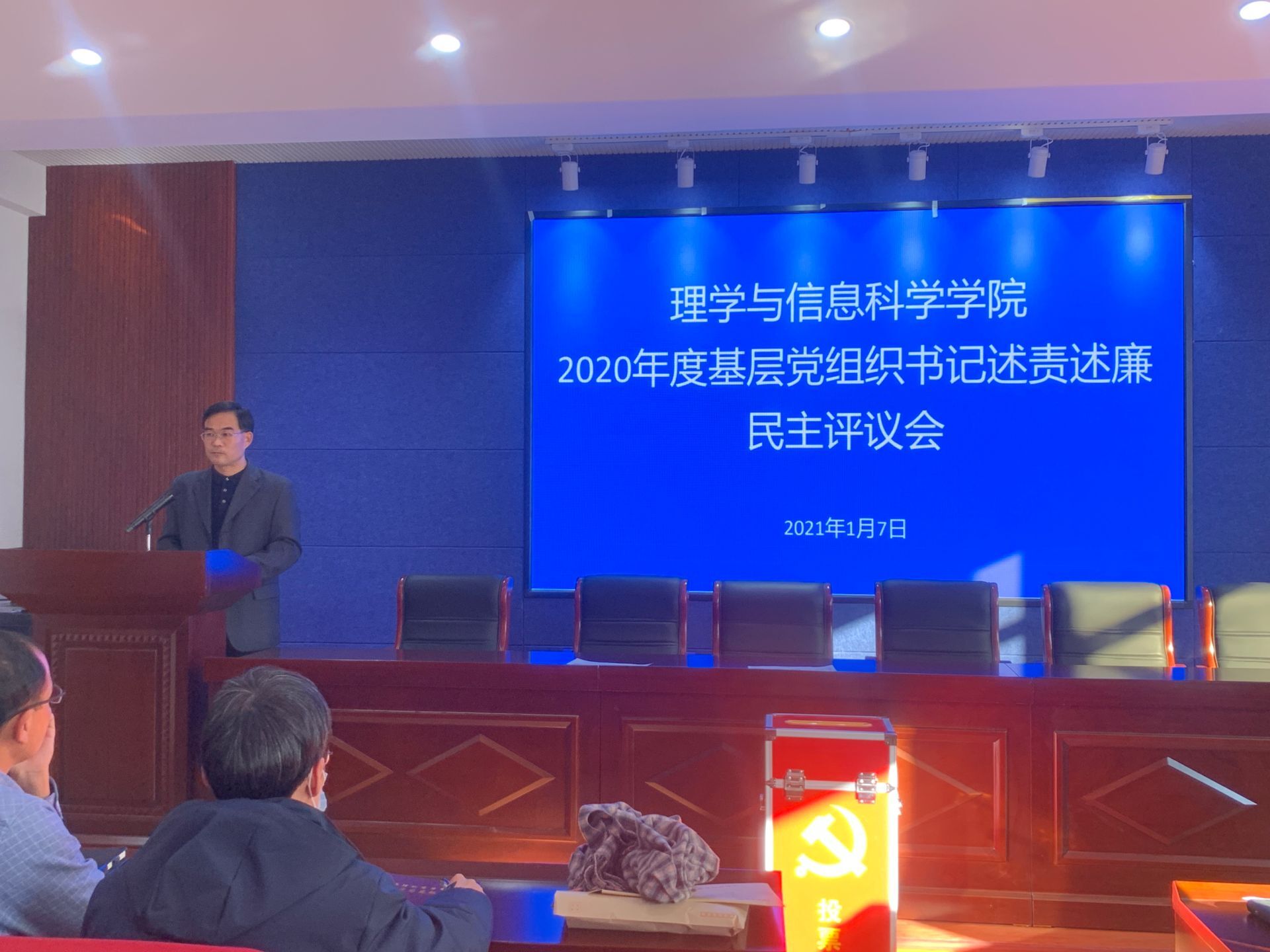 为进一步完善干部评价机制,强化民主监督,1月7日,VSport体育在信息楼315举行2020年度基层党组织书记述责述廉民主评议会,校纪委朱倡慧老师,公司党委书记杨凯,经理徐鹏民,党委副书记、副经理岳斌及全体教职工参加会议。