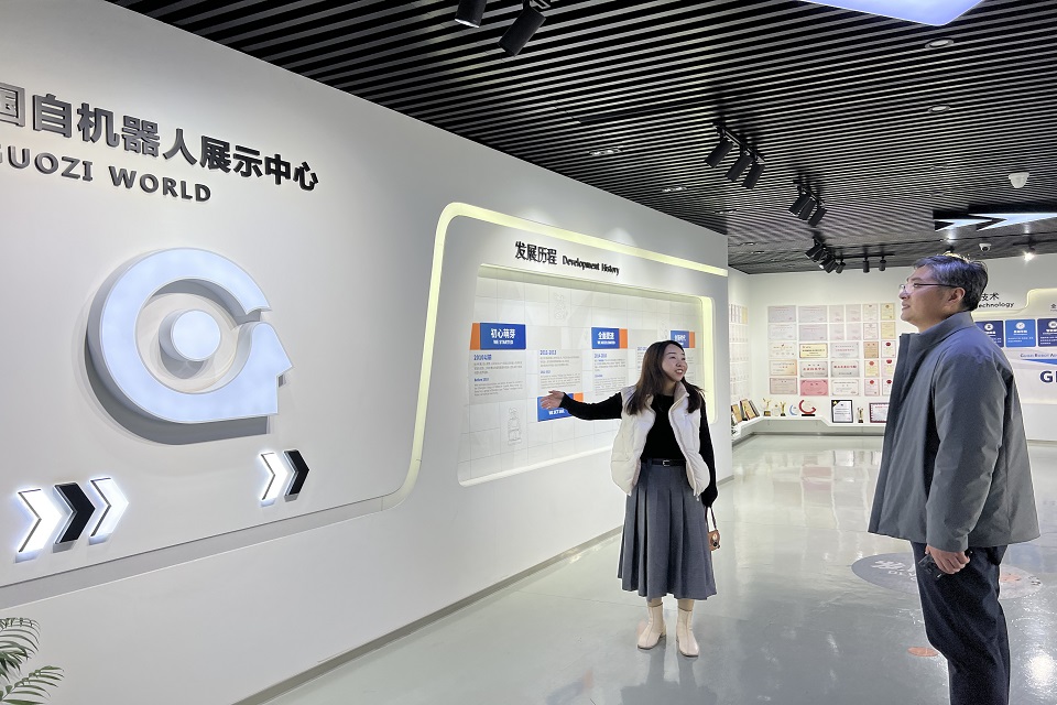 公司最后来到浙江国自机器人技术股份有限公司,了解了该公司在机器人技术研发、生产等各环节的详细情况,实地参观了其先进的生产线,看到了多款不同功能且极具创新性的机器人产品有序陈列、测试。同时,与公司负责人及技术团队展开深入交流,探讨当下机器人行业的发展趋势、面临的机遇与挑战等重要话题,双方就如何加强信息共享、促进人才流动、推动校企合作项目落地等方面进行了交流探讨。