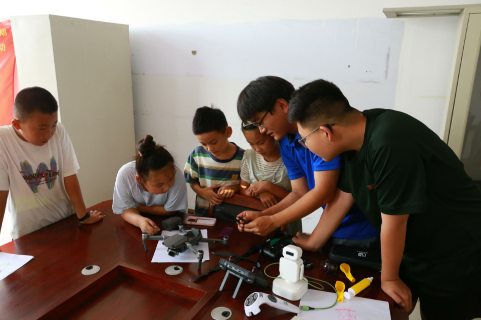 为助力乡村教育发展,实践团在水沟村开设助学课堂,结合专业所学为孩子们讲授知识,并指导他们亲自动手操作物理化学实验,提升了孩子们的科学素养。
