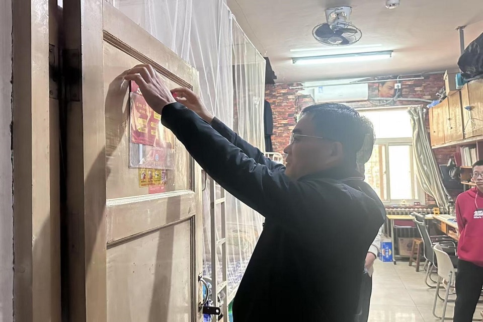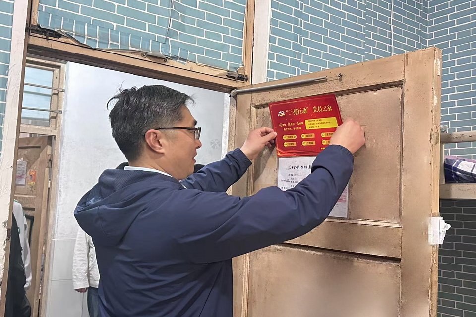 杨凯亲自为党员宿舍进行了授牌,并对员工党员提出了三点殷切期望,一是要加强理论学习,关注国家大事和政策走向,不断提高自己的政治觉悟和思想认识,将理论知识转化为实际行动的指南;二是要积极行动,勇于实践,党员们要在日常生活中以身作则,多做实事,成为行动的标杆,用自己的实际行动去影响和带动周围的人,共同营造积极向上的宿舍氛围;三是要牢记党员身份,严格要求自己,党员身份不仅是一种荣誉,更是一种责任和使命。在宿舍挂牌以后,党员们更要注重自己的言行举止,做到言行一致、表里如一,为身边的人树立榜样,引领校园文明新风尚。仪式最后,杨凯为部分党员宿舍进行了挂牌,并检查了宿舍的内务和安全情况。