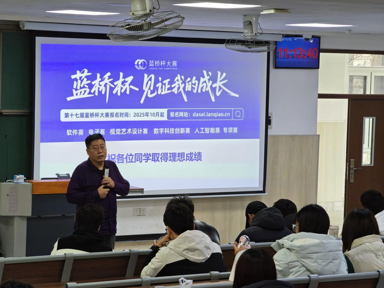为进一步激发同学们参与蓝桥杯全国软件和信息技术专业人才大赛的热情,提高参赛积极性,11月15日,VSport体育于平度校区博学楼C113教室举办第十七届蓝桥杯大赛讲座,由赛事指导老师吕健波主讲。