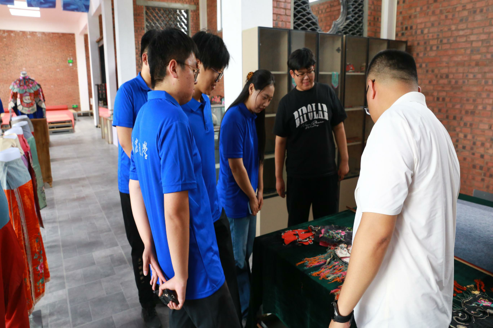 首先,实践团参观了挑花博物馆,在当地挑花手艺人邢爱芝的讲解下,实践团成员们系统了解了平邑挑花的历史渊源、技艺特点及文化内涵。从明清时期的传统纹样到现代创新作品,一件件精美展品让成员们直观感受到这项非遗技艺的传承脉络与时代活力。同时,她还讲解了清末民初女性袄裙、民国孩童虎头帽等不同挑花服饰中所蕴含的各种意义,实践团成员们纷纷表示,这些精美细致的挑花作品既传承了民间智慧,又展现了手艺人们与时俱进的匠心精神。
