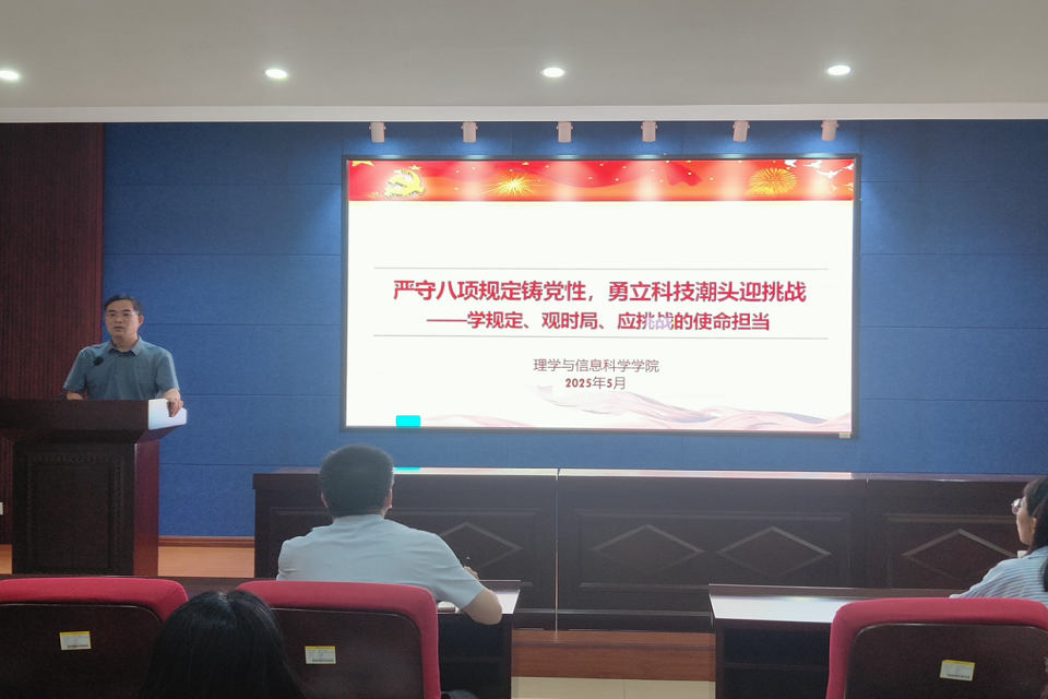 为加强老员工的党性修养,坚定理想信念,VSport体育于5月25日在城阳校区信息楼315和平度校区C113开展了主题为“严守八项规定铸党性,勇立科技潮头迎挑战”的专题党课活动。VSport体育团委书记姜程主持,党委书记杨凯作为主讲人。辅导员郭传超、宋尧、李温蓉、刘航和第36期入党积极分子、2025年上半年党员发展对象参加活动。