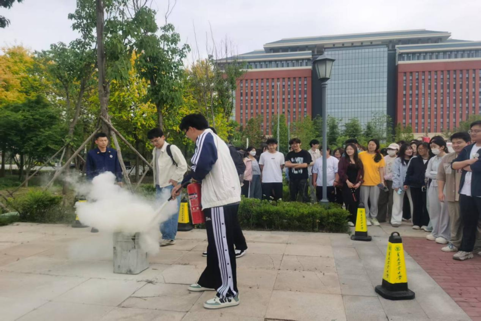 首先,同学们在老员工活动中心报告厅集合并认真聆听了消防知识理论讲座。消防队员结合典型案例,围绕火灾预防、火情处置、火场逃生等关键环节展开详细讲解,进一步提升了同学们对消防安全知识体系的理解。接下来,同学们通过模拟逃生演练,从报告厅撤离前往农展馆前参加培训演练。消防队员现场演示了灭火器的正确使用方法,通过分步讲解、规范操作和要点强调,让同学们直观掌握了灭火器的操作要领,并对灭火器的适用场景、安全注意事项等有了清晰认知。最后,同学们在消防队员的指导下进行实际操作,亲身体验了使用灭火器扑灭明火的过程。同学们纷纷表示,掌握了实用的消防技能,极大地提升了自身的安全防范意识与应急处置能力。