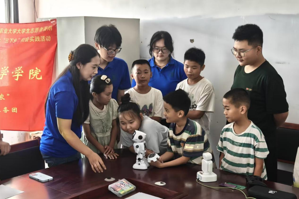 实践团成员构建了多层次的课程体系,包括特色课程、实践教学及学业辅导三个方面。在特色课程中,实践团成员们发挥专业优势,通过生动的讲解和实物演示,向孩子们介绍了无人机的飞行原理、机器人的编程基础以及人工智能的起源与发展等。孩子们近距离感受科技的魅力,激发了他们对科学探索的浓厚兴趣,为其后续接触相关领域奠定了认知基础。